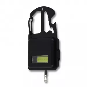 Artikel-Nr: ART93413N0002Befestigen Sie dieses handliche, taschengroße, multifunktions Werkzeug an Ihrer Tasche oder Ihrem Gürtel, oder verwenden Sie den Magneten, um es an einer beliebigen magnetischen Fläche für freihändigen Einsatz des Lichts zu befestigen. Dieses Werkzeug enthält fünf zusätzliche Funktionen: Flaschenöffner, Maulschlüssel, COB-Licht, Kreuzschlitzschraubendreher und Flachkopfschraubendreher.