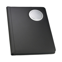 Artikel-Nr: 326140435000A4-Mappe mit vier CD-Hüllen, Schlitze für Visiten-/Kreditkarten und Dokumente, Schlaufe für Schreibgerät, Dual-Power-Rechner und Schreibblock. Ohne Schreibgerät.