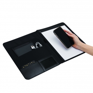 Artikel-Nr: INP56-1103177Konferenzmappe NOBLESSE im DIN-A4-Format: innen diverse Einsteckfächer, 1 Netzfach, inkl. Schreibblock (liniert), Schlaufe für 1 Schreibgerät, außen dekorative Ziernähte, in Leder-Optik mit Metallplättchen für Ihre Werbeanbringung