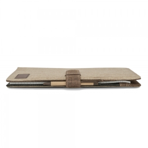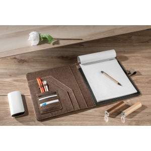 Artikel-Nr: ARD17557A4 Öko-Mappe. 2 große Fächer, 2 USB Fächer, 2 kleine Fächer, Kugelschreiber, Notizblock. Das Logo wird auf dem Öko-Leder-Umschlag graviert. Notizbuch ist nicht dauerhaft fixiert, sondern in die Tasche hineingeschoben, so dass es leicht ersetzt werden kann.