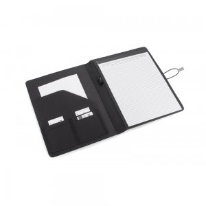 Artikel-Nr: ARD07171-14TELLA Konferenzmappe mit Gummiband, geschlossen mit einem grauen lederähnlichen Material (PU), das das Öffnen der Mappe erleichtert und gleichzeitig eine interessante und elegante Dekoration bietet. Enthält eine Dokumententasche, zwei kleinere Taschen, Platz für einen Stift und Visitenkarten sowie einen A4-Notizblock mit austauschbarem Stift.