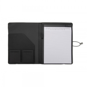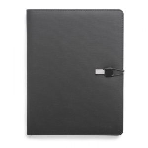Artikel-Nr: ARD07171-14TELLA Konferenzmappe mit Gummiband, geschlossen mit einem grauen lederähnlichen Material (PU), das das Öffnen der Mappe erleichtert und gleichzeitig eine interessante und elegante Dekoration bietet. Enthält eine Dokumententasche, zwei kleinere Taschen, Platz für einen Stift und Visitenkarten sowie einen A4-Notizblock mit austauschbarem Stift.