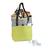Einkaufstasche aus Non-Woven-Material mit isolierender Innenschicht, Vordertasche mit Klettverschluss und Schulter-Tragehenkeln.