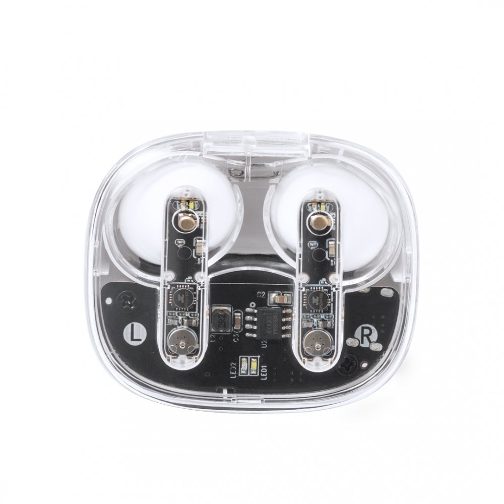 Artikel-Nr: KTO20249001000In-Ear-Kopfhörer in markantem, transparentem Design. Bluetooth® 5.3-Verbindung und lange Akkulaufzeit. Ergonomisches Design, mit integrierter Touch-Control-Taste am Headset, passender Ladestation und Ladestatusanzeige. Freisprechfunktion. Ladeanschluss mit Typ-C-Eingang (Kabel im Lieferumfang enthalten). Präsentiert in individueller Kraft-Design-Box und recycelter Tasche.