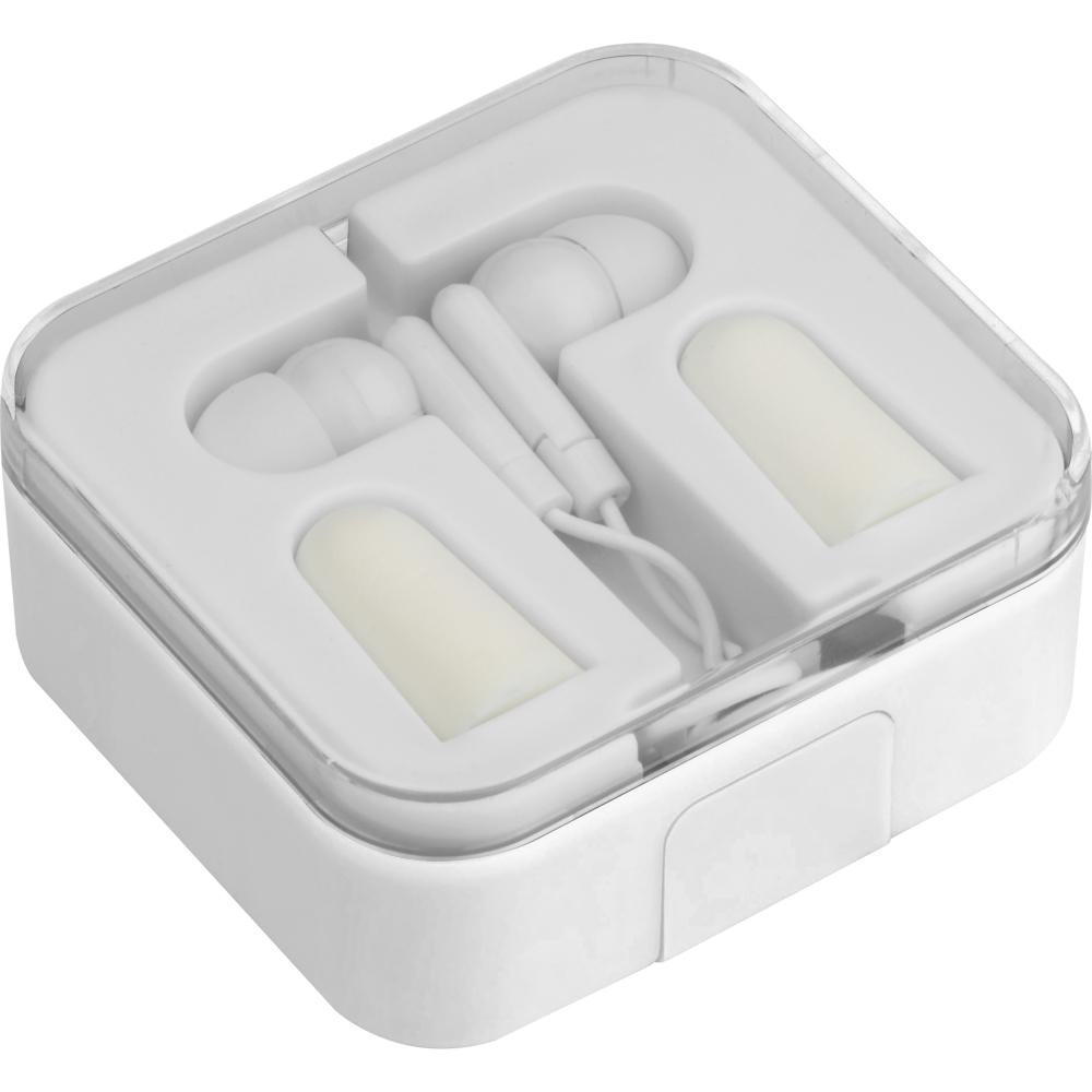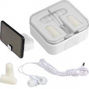 Artikel-Nr: EAG154906Praktisches Set bestehend aus Köpfhörern, Ohrstöpseln sowie einer Aufbewahrungsbox mit Handyhalter. Ihre Werbung drucken wir auf die Box.