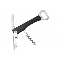 Artikel-Nr: 688ECO012Griff aus schwarzem ABS. Korkenzieher aus Edelstahl mit 5 Spiralen. Klinge zum Entfernen der Weinmanschette. Flaschenöffner.