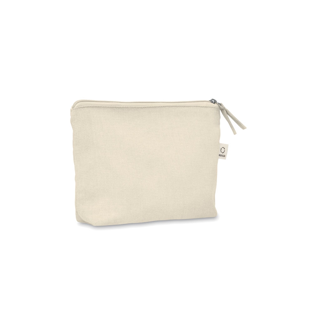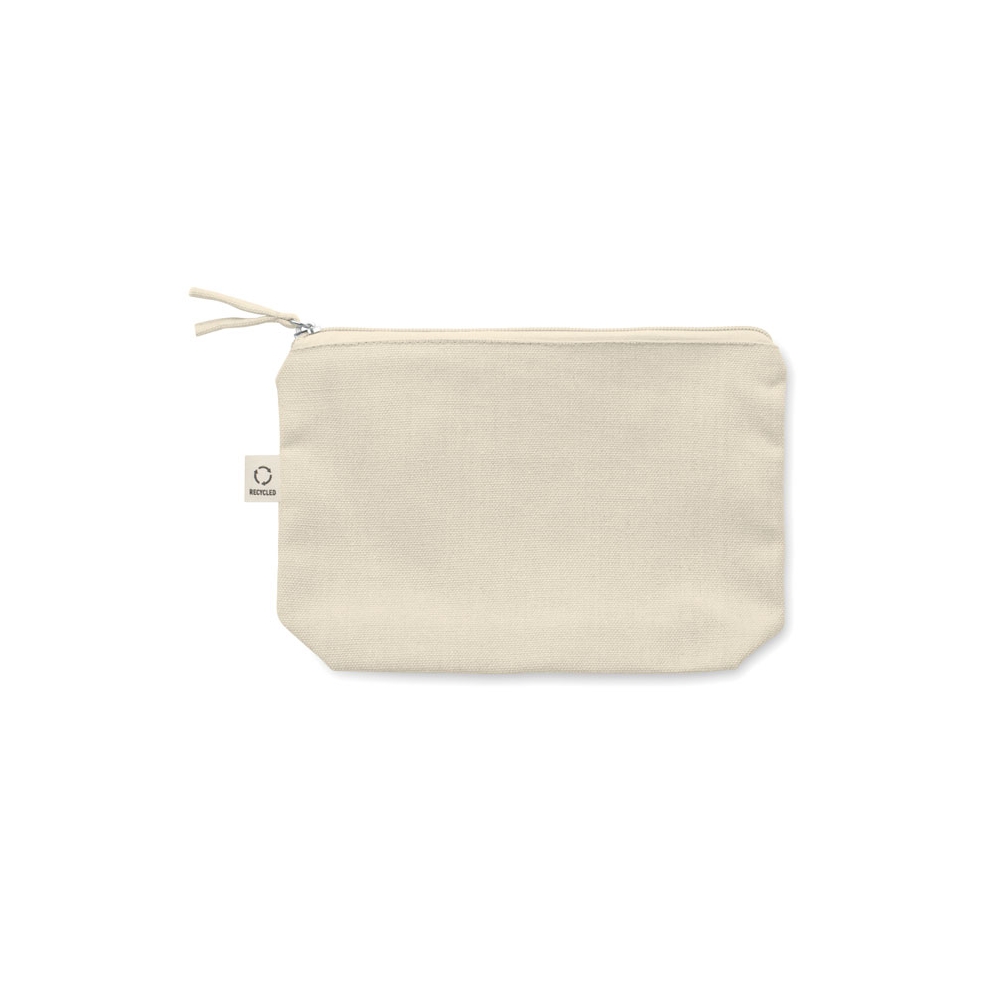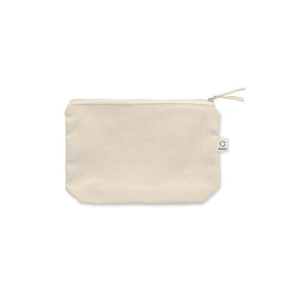 Artikel-Nr: OCBMO2274-13Kosmetik- oder Zubehörtasche aus recyceltem Material (70 % recycelte Baumwolle, 30 % RPET-Polyester) mit farblich passendem Reißverschluss-Puller. 320 g / m². Artikel kann nach dem Bedrucken schrumpfen.