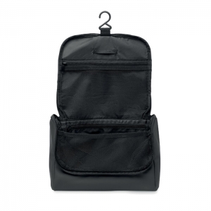 Artikel-Nr: OCBMO2740-03Kosmetiktasche aus weichem PU. Großes Hauptfach, inneres Netzfach mit Reißverschluss und weiteres Netzfach. Aufhänger und 210D RPET-Futter.