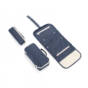 Artikel-Nr: ARD20290-06Die Kosmetiktasche ROLLI zum Entrollen, bestätigt sich in jeder Reise. Die Kosmetiktasche ist mit zwei kleineren, abnehmbaren Beuteln, mit einer Tasche mit einem Schloss und einer Griff zur Befestigung der Tasche im Badezimmer z. B. an einen Handtuchhalter, ausgestattet. Die Kosmetiktasche ist aus weichem Doppelfaden-Polyester 300D hergestellt.