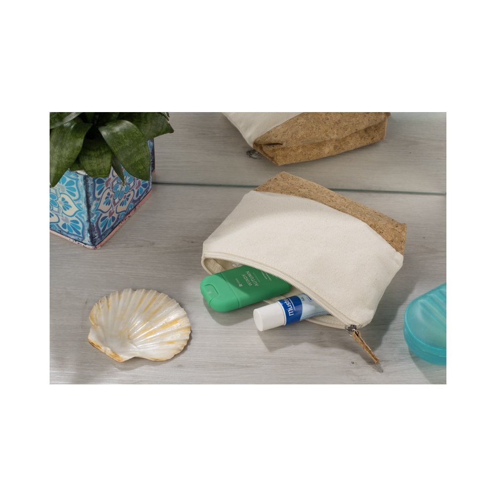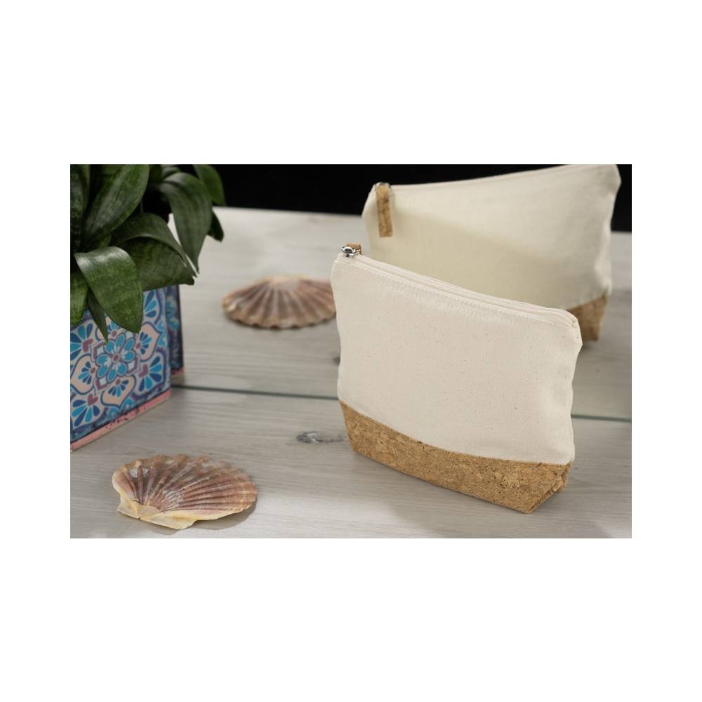Artikel-Nr: ARD20808-17Mit der Kosmetiktasche TISO stellen wir Ihnen ein praktisches Werbegeschenk vor, das perfekt auf die Bedürfnisse Ihrer Kunden angepasst ist. Der aus strapazierfähigem Canvas-Gewebe gefertigte TISO-Kosmetikbeutel zeichnet sich durch seine Haltbarkeit und sein stilvolles Design aus. Der Boden aus Naturkork verleiht ihm einen einzigartigen Charakter und einen ökologischen Touch. Die Tasche mit Reißverschluss und Korkgriff ist ideal für die Aufbewahrung kleinerer Gegenstände in größeren Taschen und am Strand, wo sie Schlüssel, Telefon und andere kleine Gegenstände sicher aufbewahrt und vor Sand schützt. Die Kosmetiktasche TISO kann mit der größeren Kosmetiktasche CORCO kombiniert werden, um den Kunden eine einheitliche und funktionelle Lösung zu bieten, die ideal für Reisen und den täglichen Gebrauch ist.