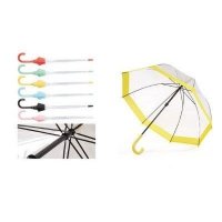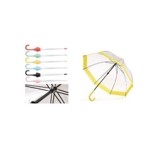 Artikel-Nr: WJRU091613Transparenter Schirm mit farbiger Umrandung als auch einen farblich passendem Griff.