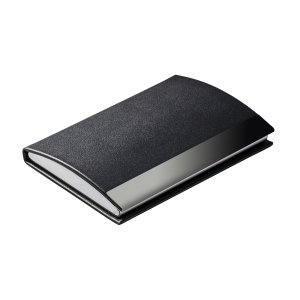 Artikel-Nr: RFS51534Stilvolles, geschwungenes Visitenkartenetui in schwarzem Kunstleder mit Gunmetal-Plattierung, ergänzt durch einen hochwertigen Magnetverschluss. Der edle Hingucker liegt angenehm in der Hand. Je nach Papiergrammatur ist das Etui für circa 15 Visitenkarten geeignet. Veredelbar mit Lasergravur oder 1c-Tampondruck.