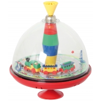 Dreht man den Kreisel, fährt die Bahn im Kreis herum, die Schranke öffnet sich und man hört einen tollen Eisenbahnsound! (2 Mignon Batterien sind enthalten.)
