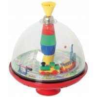 Dreht man den Kreisel, fährt die Bahn im Kreis herum, die Schranke öffnet sich und man hört einen tollen Eisenbahnsound! (2 Mignon Batterien sind enthalten.)
