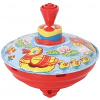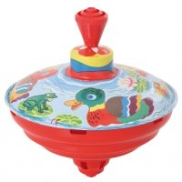 Der kleine Blechkreisel summt beim Drehen. Ab 12 Monaten. Achtung! Nicht geeignet für Kinder unter 36 Monaten.