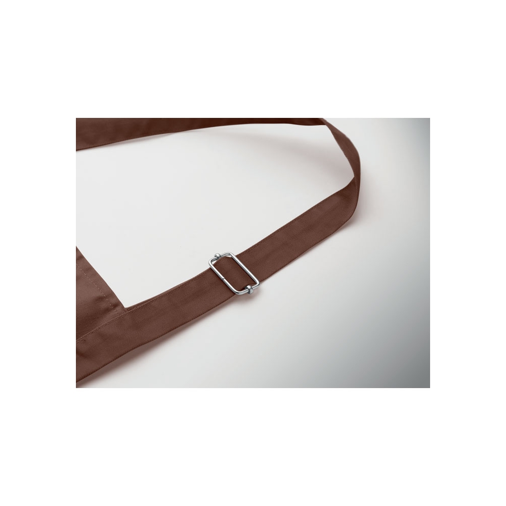 Artikel-Nr: OCBMO2349-41Lange, verstellbare Küchenschürze aus 240 g / m² Polycotton (35% Baumwolle, 65% Polyester) mit zwei Fronttaschen und verstellbarem Gurt mit Metallschnalle.