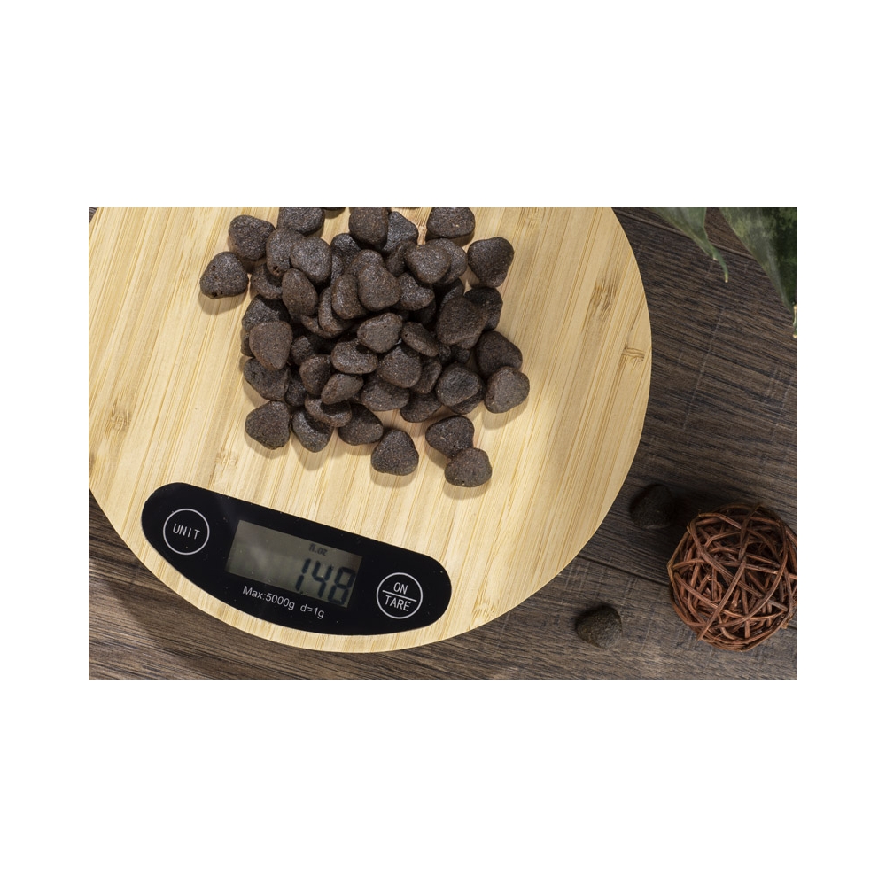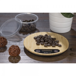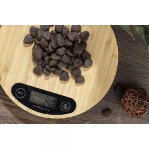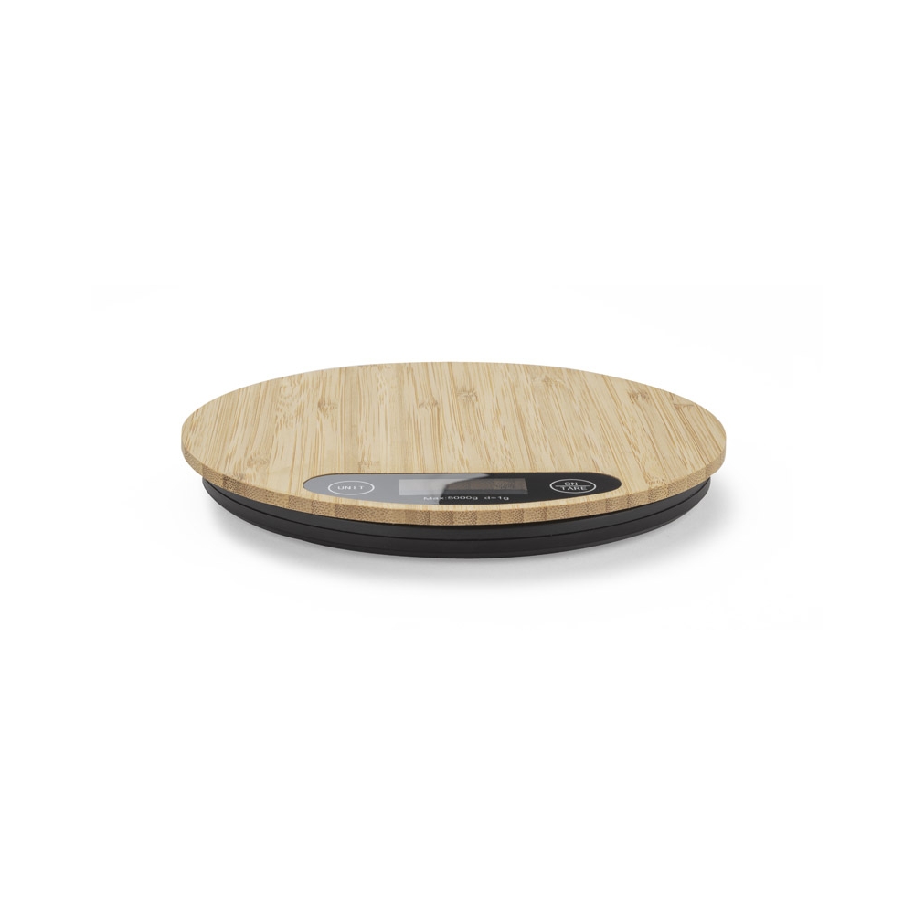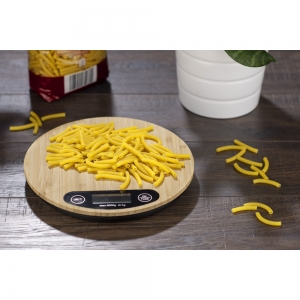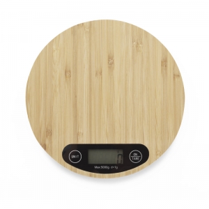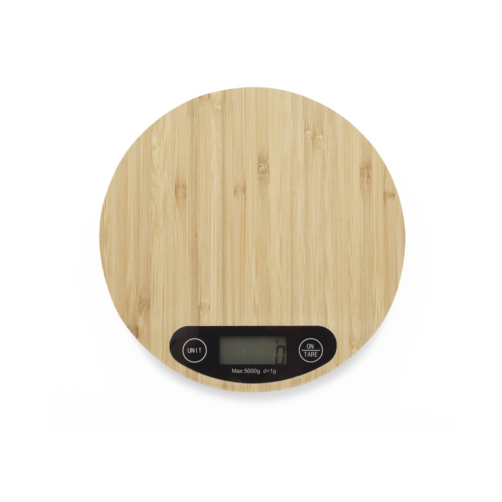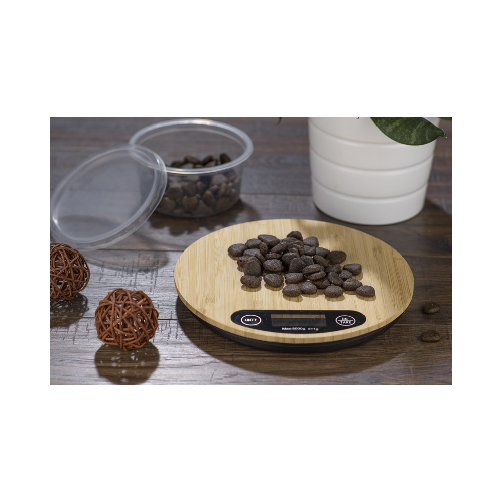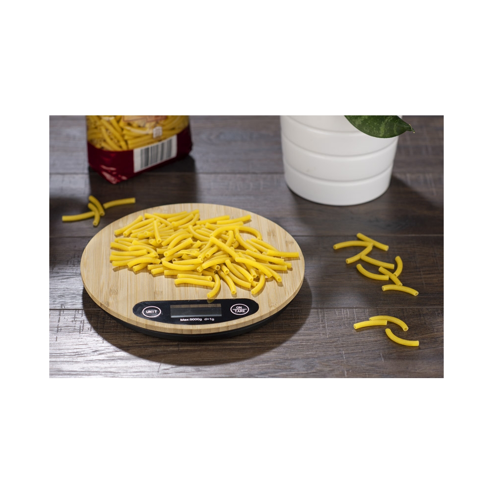 Artikel-Nr: ARD16540Elektronische Küchenwaage CIRCA aus natürlichem Bambus. Technische Informationen:- maximaler Messbereich 5 kg,- Messgenauigkeit bis zu 1 g,- Maßeinheiten: kg / lb und ml / oz.- Tara-Funktion- benötigt AAA-Batterien x 2 Stück. Batterien nicht enthalten.