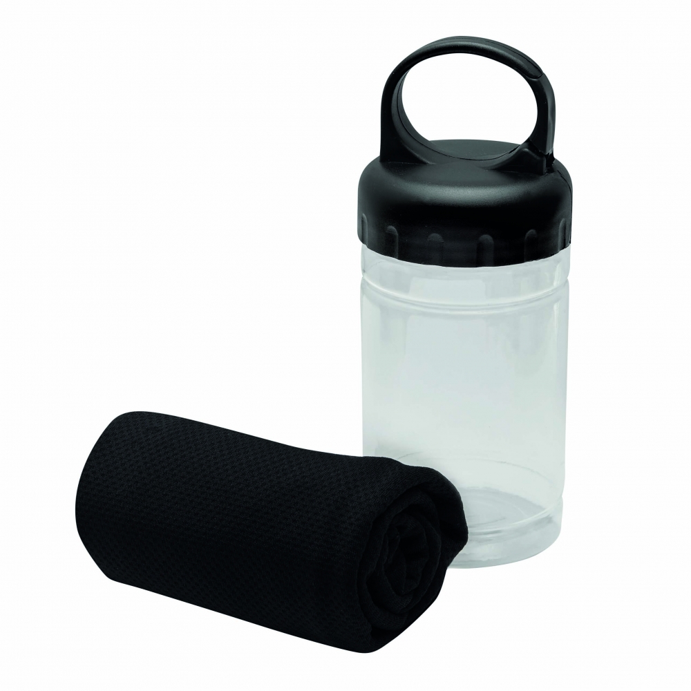 Artikel-Nr: INP56-0605072Kühlhandtuch CHILLING: in transparenter Dose, integrierter Sonnenschutzfaktor, für einen lang anhaltenden Kühleffekt Handtuch mit Wasser befeuchten und schleudern oder Wasser zur Dose hinzugeben und gut schütteln, Deckel mit Karabinerhaken (der Karabiner ist NICHT als Sicherung beim Klettern geeignet) - ideal für Fitness und Sportaktivitäten