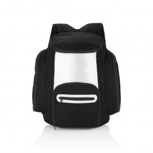 Artikel-Nr: XND733181600D Kühltaschenrucksack mit silberner Innenseite damit Essen und Getränke frisch und gekühlt bleiben. Auf der Vorderseite befindet sich noch eine weitere Tasche mit farbigen Details, die mit einem Reißverschluss geschlossen wird für alle anderen Kleinigkeiten.