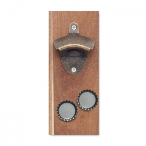 Artikel-Nr: OCBMO2131-40Kapselheber aus Akazienholz und Eisen. Mit starkem Magnet zum Auffangen der Kronkorken und zur Befestigung am Kühlschrank.