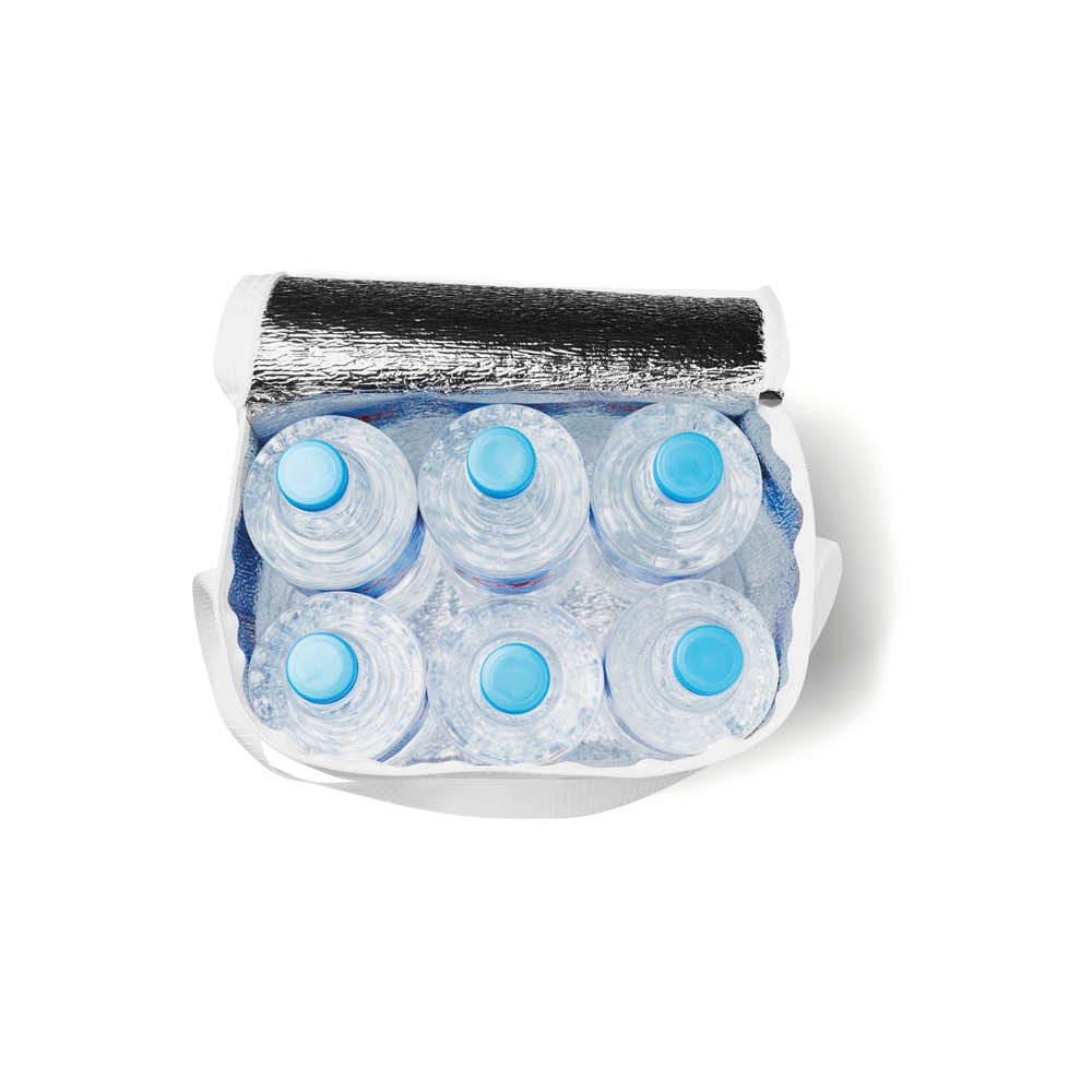 Artikel-Nr: OCBMO8529-06Kühltasche für 1,5l Flaschen. Außen 210D Polyester. Mit Absetzungen Non-Woven 80 g / m². Isoliermaterial: Aluminiumfolie. Füllmenge 12,5L.