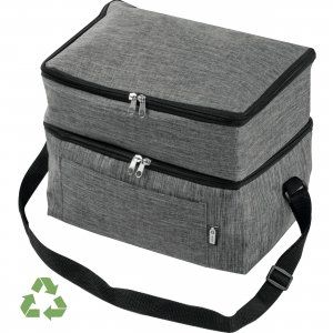 Artikel-Nr: MCM6297877Kühltasche aus recyceltem Polyester (rPET) mit 2 separaten PEVA Kühlfächern, einer Fronttasche und einem Füllvermögen von ca. 12 Litern. Durch den Tragegurt ist die Kühltasche perfekt für einen Tag am Strand. Ihre Werbung drucken wir auf die Tasche.
