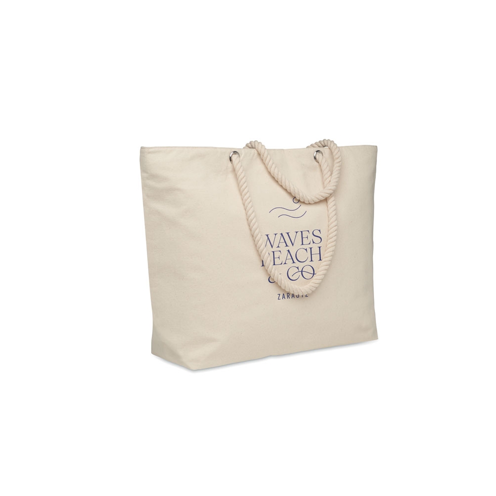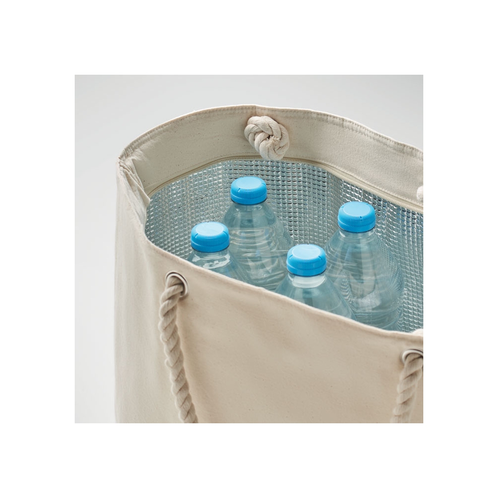 Artikel-Nr: OCBMO2127-13Kühltasche aus Baumwolle 220 g / m² mit Reißverschluss und Kordelgriff. Isolierung: 2 mm Alufolie.