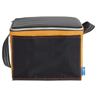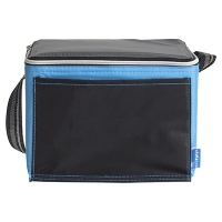 Kühltasche in vier kraftvollen Farben für sechs Dosen. Mit schwarzer Vordertasche und thermoversiegelter Innenseite.