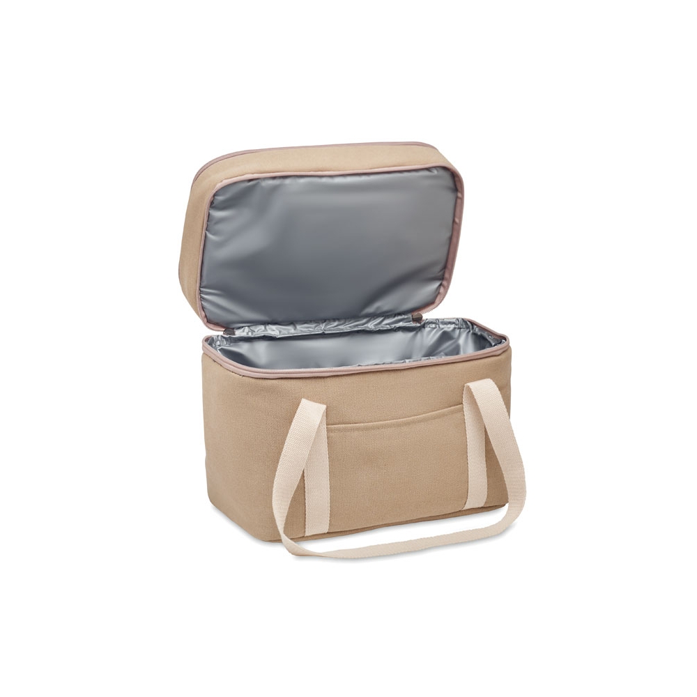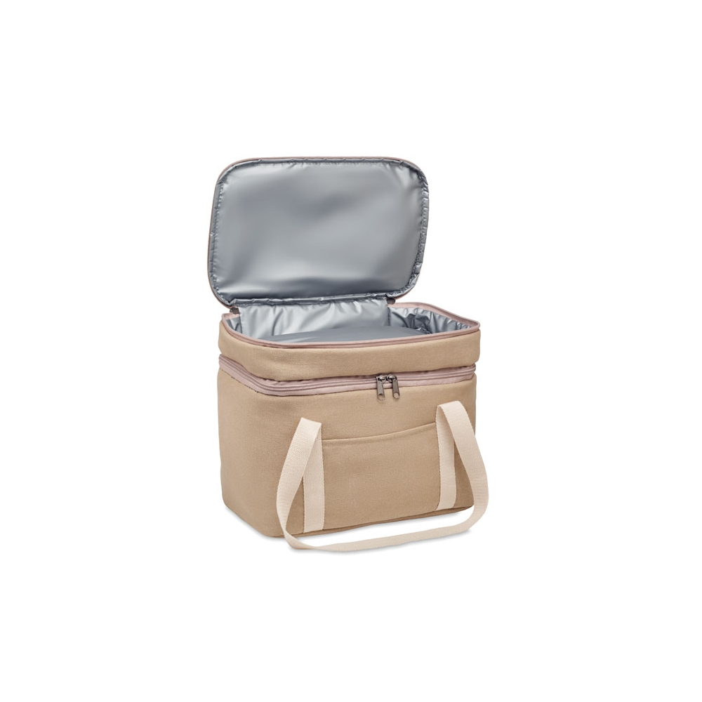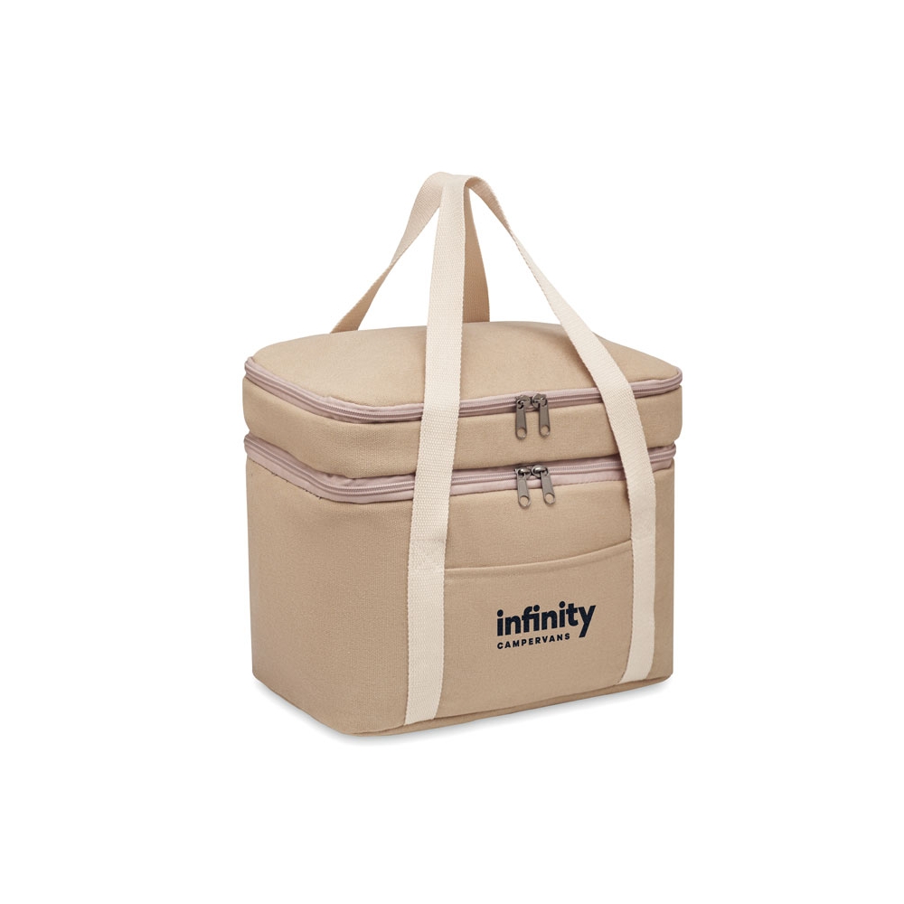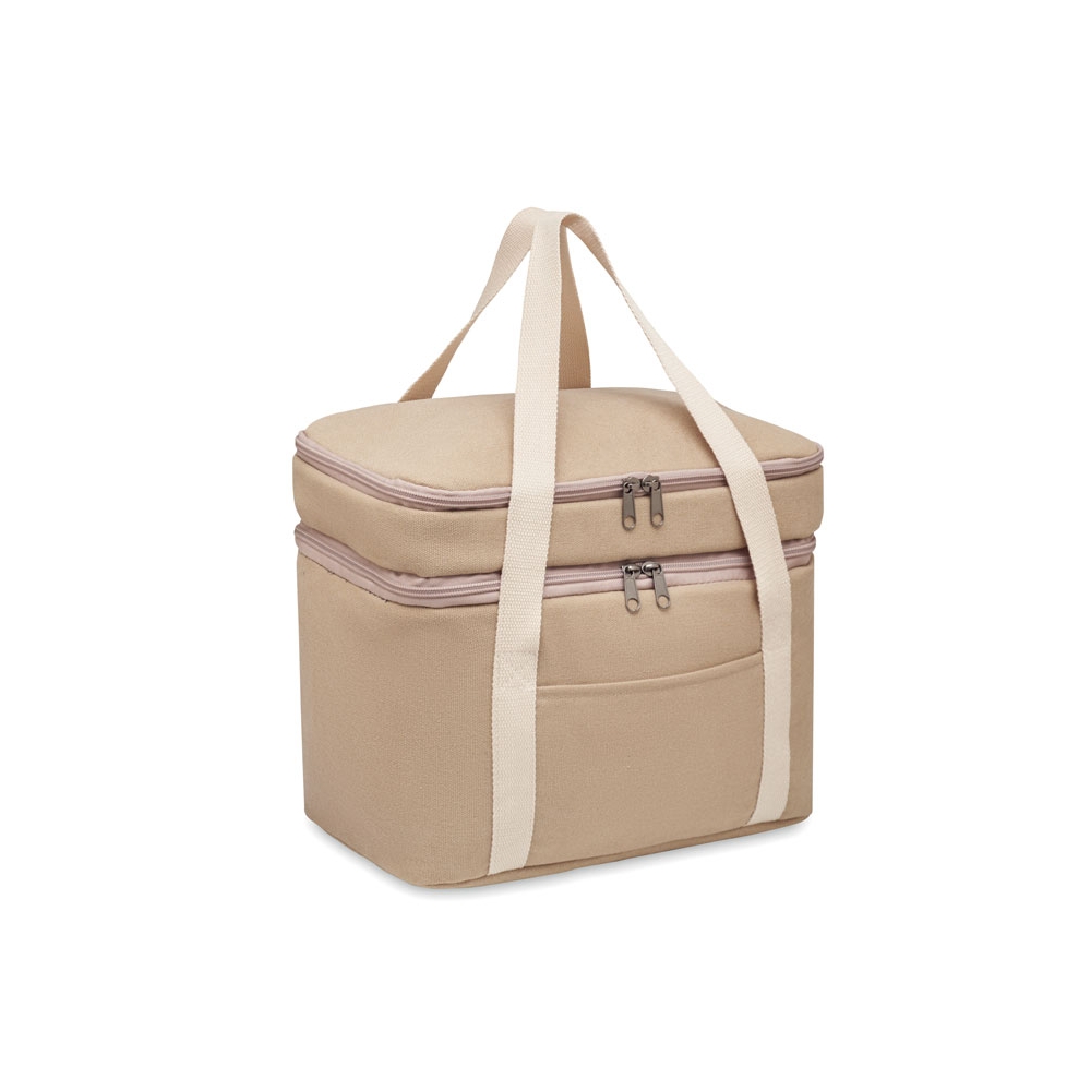 Artikel-Nr: OCBMO6868-13Kühltasche mit 2 Fächern aus gewaschenem Canvas mit Baumwoll-Gurt. 320 g / m². Isolierung: 15C PEVA mit 6mm PE-Schaum.