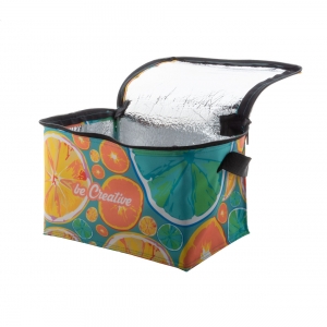 Artikel-Nr: AND716469-10Individuelle Kühltasche mit Reißverschluss mit Aluminiumpolsterung für 6 Stück 0,33 L Dosen. Material: 600D RPET Polyester. Der Preis ist inkl. Sublimationsdruck und RPET-Label. Mindestmenge: 25 Stk