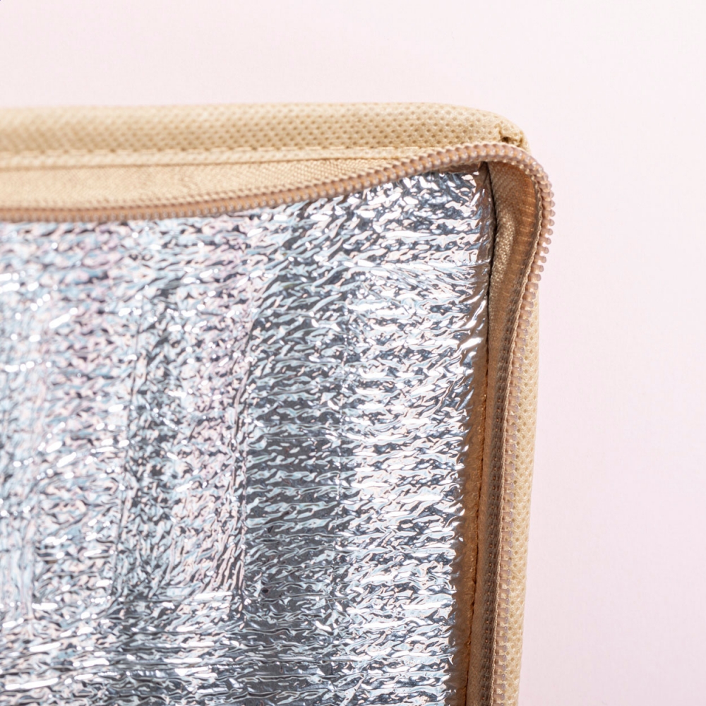 Artikel-Nr: AND721991Reißverschluss-Kühltasche aus laminiertem Recyclingpapier mit Aluminiumbeschichtung und Vordertasche - ideal für die Bedruckung. Passend für 6 Getränkedosen (0,33 l).
