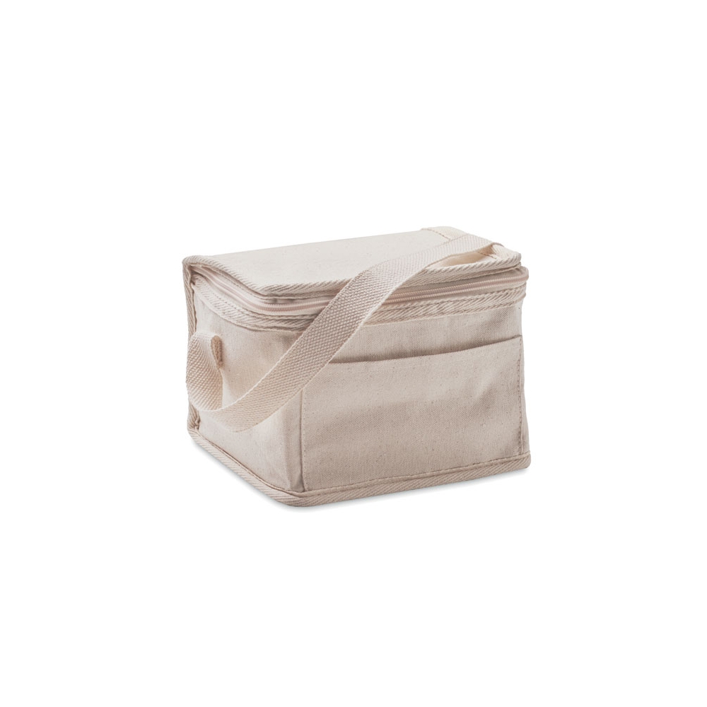 Artikel-Nr: OCBMO6803-13Kühltasche mit isolierender Aluminium-Folie 3mm für 6 Dosen. Baumwolle 280 g / m². Mit Fronttasche. Füllmenge: 3 L.