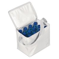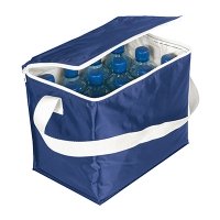 Schlanke Kühltasche mit Reißverschluss-Hauptfach und Tragegurt.Für bis zu 5 kg.