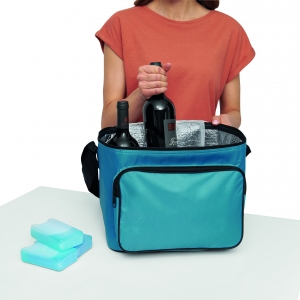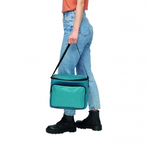 Artikel-Nr: INP56-0801125Kühltasche ICE im quadratischen Format: mit isoliertem Reißverschluss-Hauptfach, ein Reißverschlussfach auf der Front, verstellbarer Schultergurt
