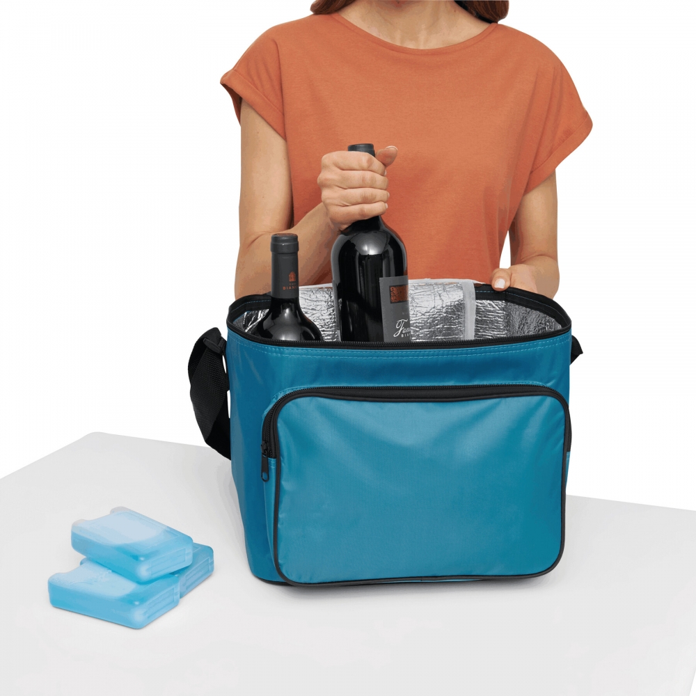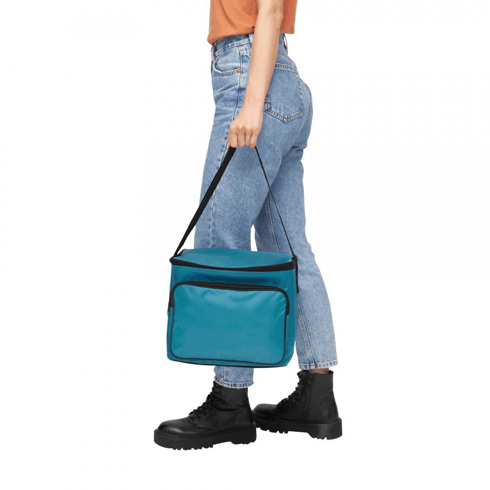Artikel-Nr: INP56-0801125Kühltasche ICE im quadratischen Format: mit isoliertem Reißverschluss-Hauptfach, ein Reißverschlussfach auf der Front, verstellbarer Schultergurt