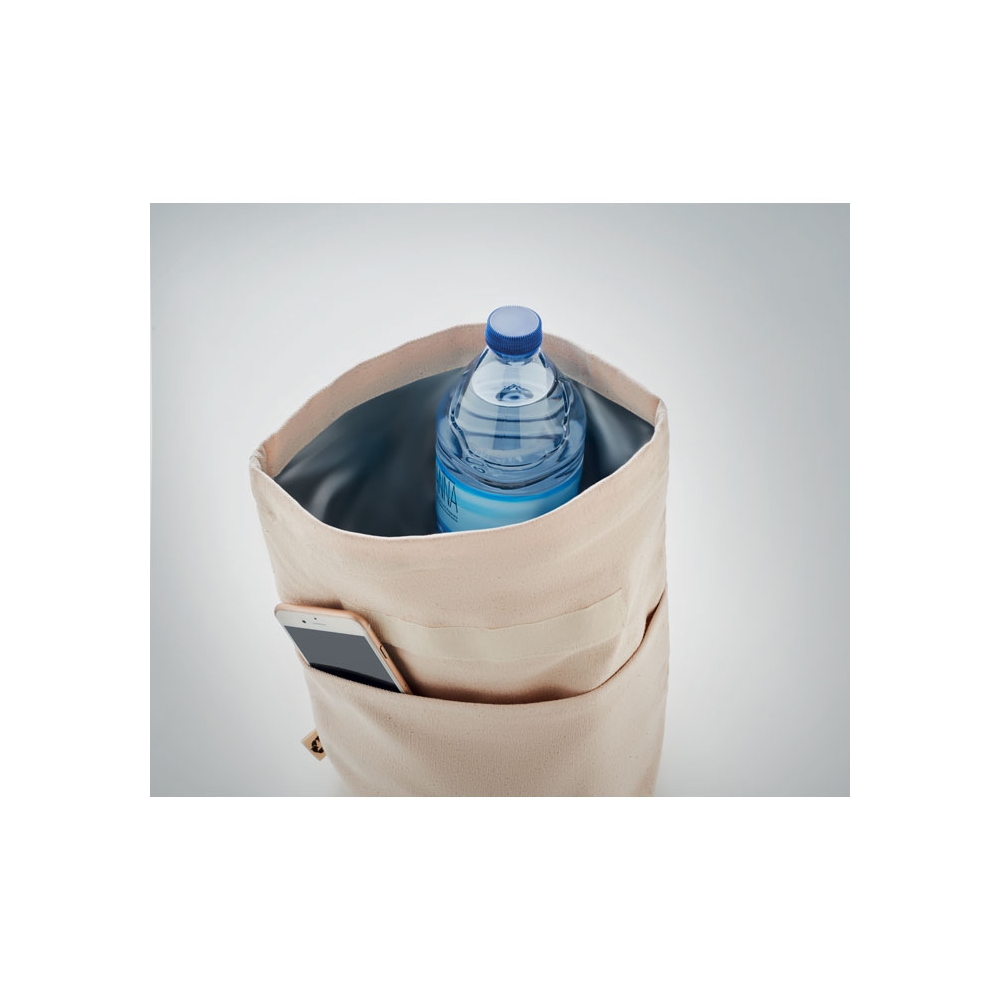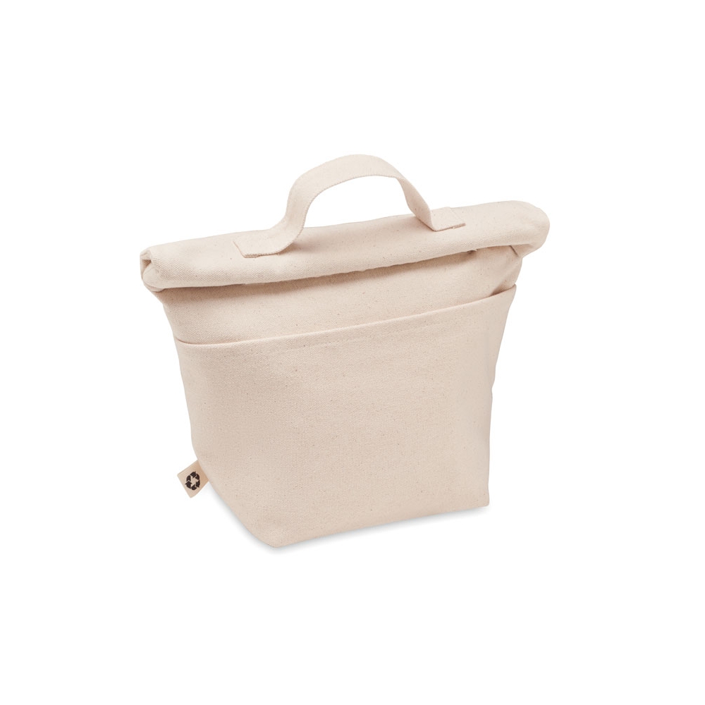 Artikel-Nr: OCBMO6751-13Kühltasche aus aus recyceltem Polycotton (70% recycelte Baumwolle, 30% recycelter Polyester) mit Rolltop-Klettverschluss. Isolierung: 3mm PE-Schaum mit 12C PEVA.