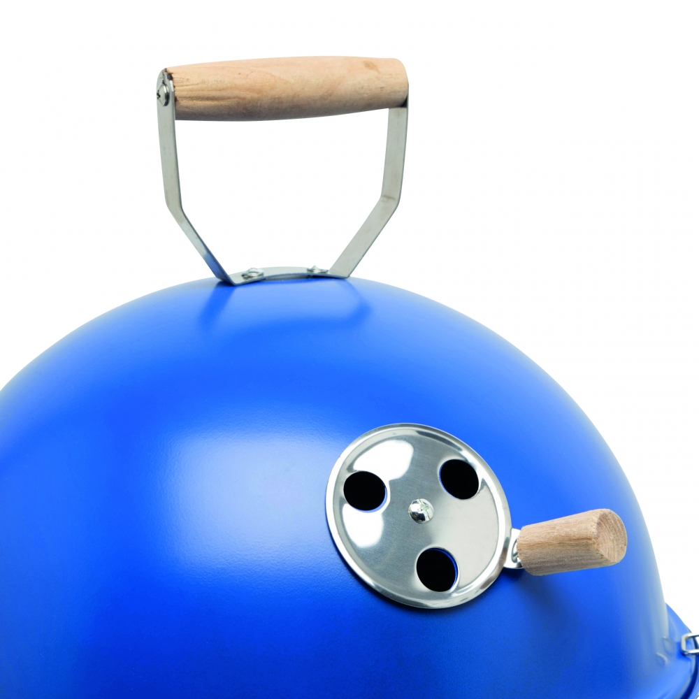 Artikel-Nr: INP56-0604056Kugelgrill COOKOUT: Metall-Korpus mit 2 Belüftungsfenstern, herausnehmbare Schale mit Luftlöchern für Kohle, herausnehmbarer Grillrost Ø ca. 29 cm, Garhaube mit Belüftungsfenster und Holzgriff, 3 Schnappverschlüsse zum Befestigen der Haube am Metall-Korpus, 3 Metallfüße mit Kunststoffkappen, in Box