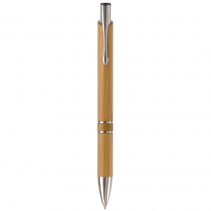 Artikel-Nr: ART87288N0094Kugelschreiber aus Bambus mit Metallclip und metallisierter Spitze. Der Kugelschreiber hat eine schwarzschreibende Mine.