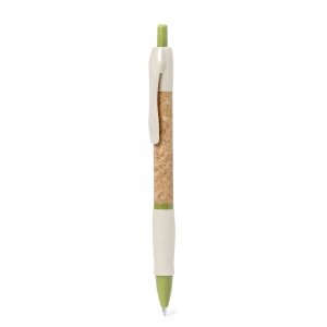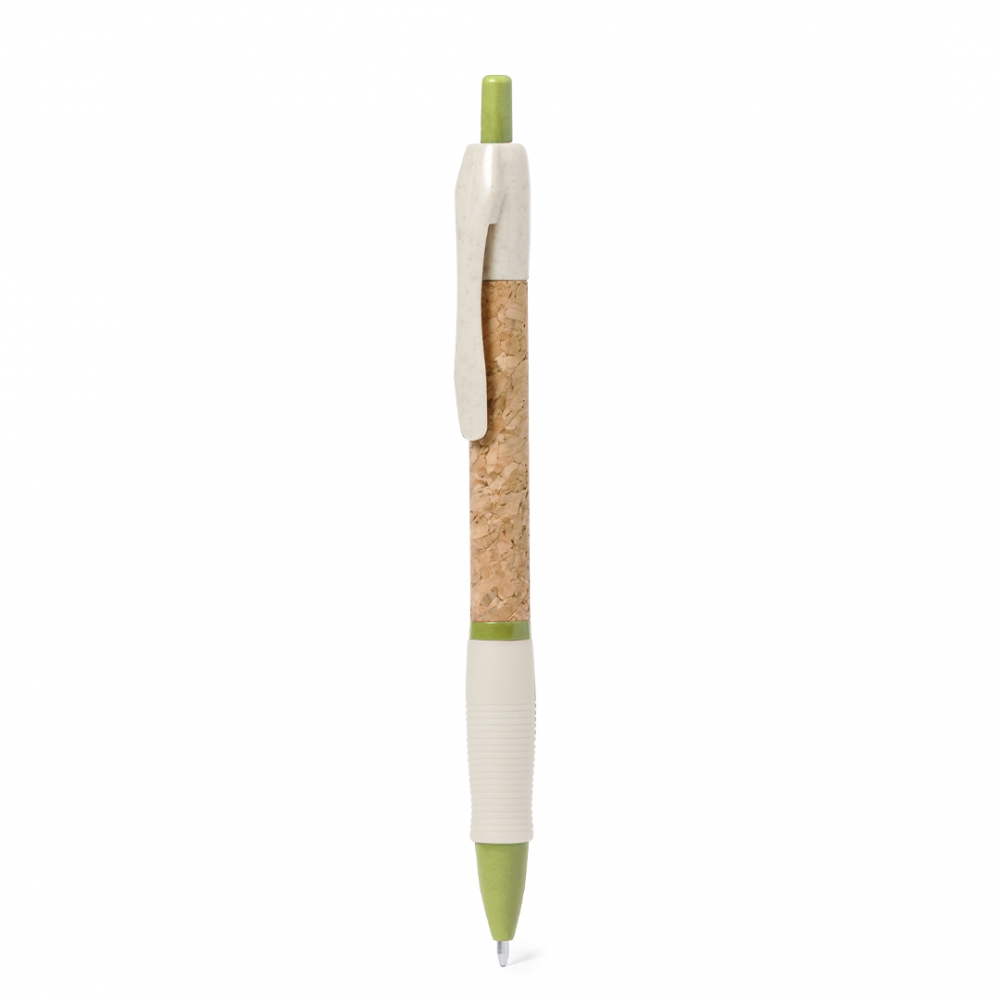 Artikel-Nr: KTO20225004000Kugelschreiber mit Druckknopfmechanik und Naturkorkschaft. Clip, Spitze und Druckknopf aus Weizenrohr. Erhältlich in einer Reihe von Farben. Abzeichen aus Weizenstroh auf der Oberseite des Stiftes. Mit blauer Tinte. Hergestellt aus pflanzlichen Bestandteilen, um die Verwendung natürlicher Rohstoffe zu fördern und Schadstoffemissionen zu reduzieren.