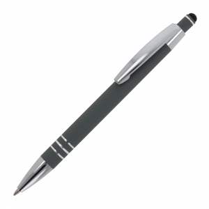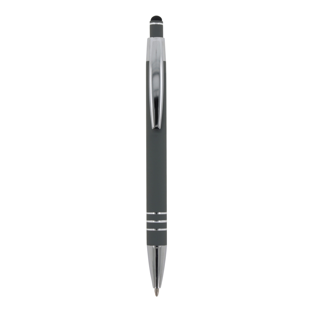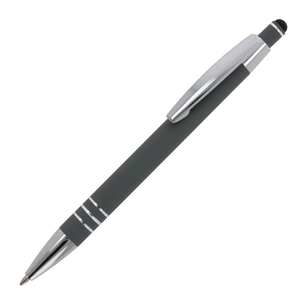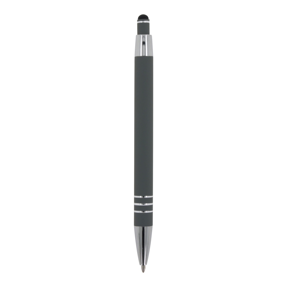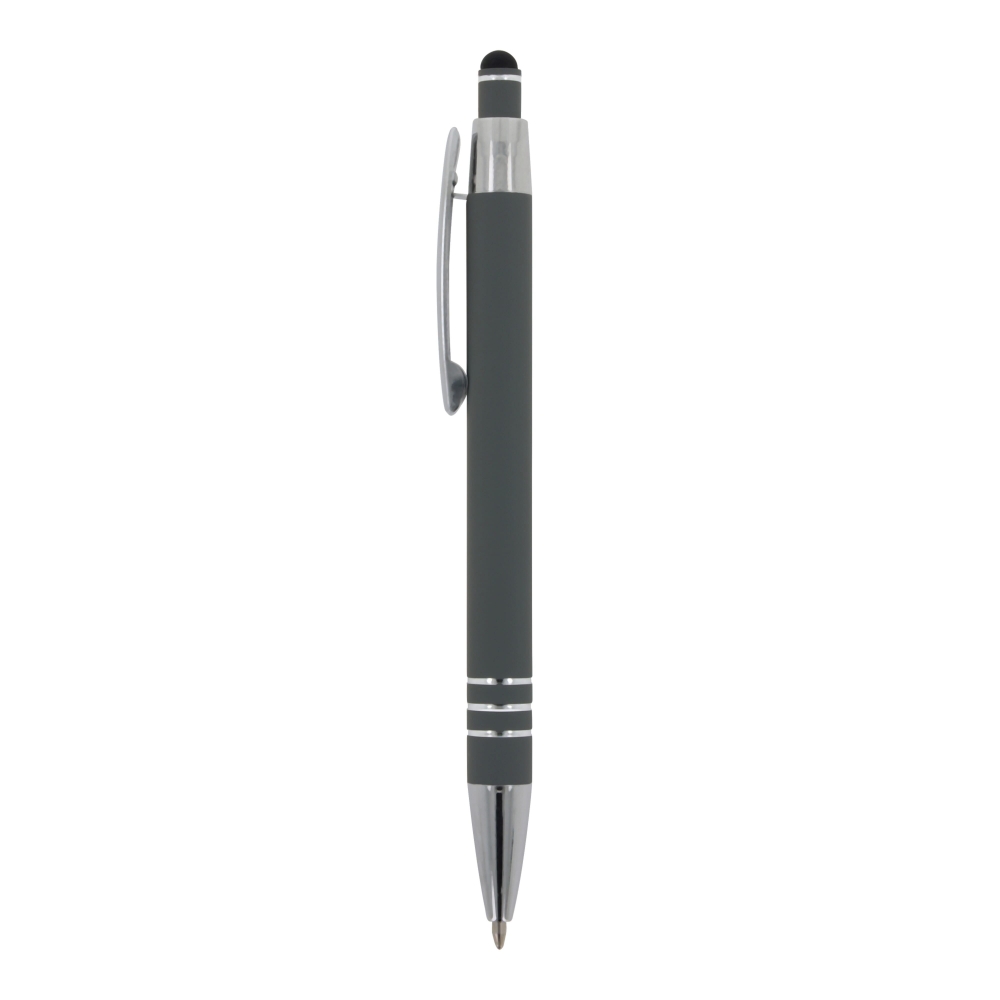 Artikel-Nr: ART87781N0061Kugelschreiber aus Aluminium mit elegantem Soft-Touch-Finish und Stylus. Mit massivem Metallclip. Schreibfarbe: blau.