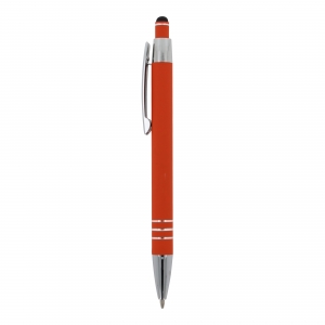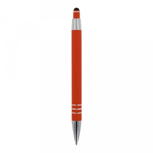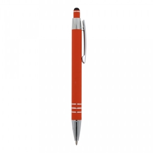 Artikel-Nr: ART87781N0026Kugelschreiber aus Aluminium mit elegantem Soft-Touch-Finish und Stylus. Mit massivem Metallclip. Schreibfarbe: blau.