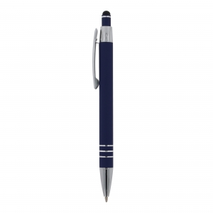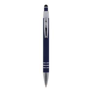 Artikel-Nr: ART87781N0010Kugelschreiber aus Aluminium mit elegantem Soft-Touch-Finish und Stylus. Mit massivem Metallclip. Schreibfarbe: blau.
