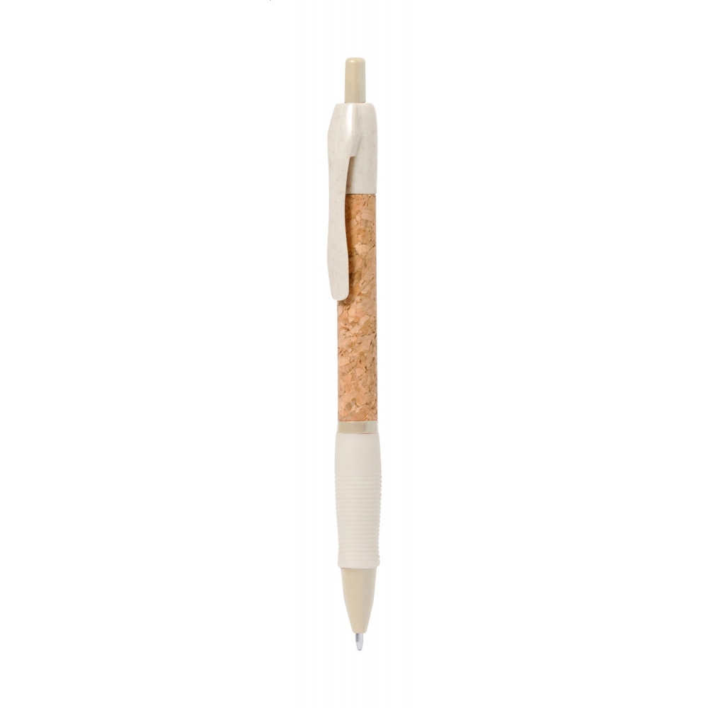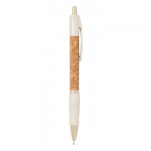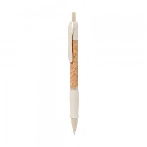 Artikel-Nr: AND733011-00Ökologischer Kugelschreiber aus Weizenstroh-Kunststoff, Schaft mit Naturkork überzogen und Gummigriffzone. Mit blauschreibender Mine.