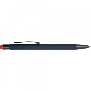 Artikel-Nr: GIV8477008Gummierter schwarzer Kugelschreiber 'Formentera' mit Touch-Funktion. Der Schaft ist unter der Oberfläche in der Farbe des Touchpens lackiert, sodass diese beim Lasern zum Vorschein kommt. Mit blauer Mine.