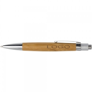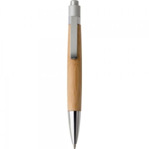 Artikel-Nr: GIV6612011Kugelschreiber aus Bambus, mit Metall-Clip, Drücker und Spitze mit blauer Mine.