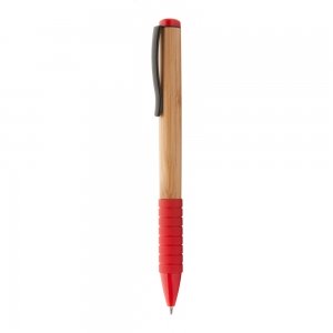 Artikel-Nr: AND809428-05Drehkugelschreiber aus Bambus mit Metall-Clip, farbiger Spitze und farblich abgestimmter Gummi-Griffzone, blauschreibend.