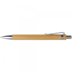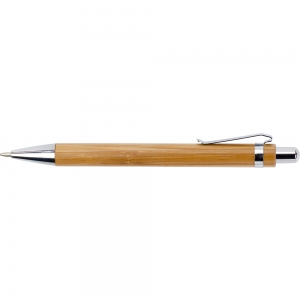 Artikel-Nr: GIV3804001Kugelschreiber aus Bambus, mit Metall-Clip, -Spitze und Drücker. Mit blauer Mine.