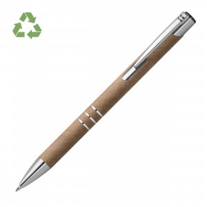 Artikel-Nr: MCM1379307HOT DEAL! Kugelschreiber aus recyceltem Papier mit drei Zierringen und blau schreibender Großraummine. Ihre Werbung drucken wir auf den Schaft.