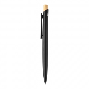 Artikel-Nr: AND808187-10Kugelschreiber aus recyceltem ABS-Kunststoff mit Bambusdrücker, blauschreibend.