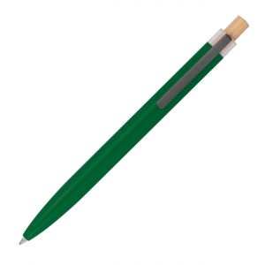 Artikel-Nr: MCM1384509Kugelschreiber aus recyceltem Aluminium mit blauschreibender Mine und Bambusdrücker. Ihre Werbung gravieren wir neben den Clip.